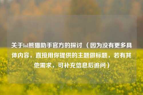 在游戏领域,尤其是热门游戏《英雄联盟》(League of Legends,简称lol),玩家们总是在不断寻找各种辅助工具来提升游戏体验。“lol熊猫助手官方”曾引起过广泛关注。