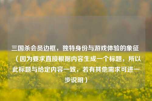 在三国杀的世界里,会员边框不仅仅是一种装饰,它更是玩家身份的独特标识,承载着玩家在游戏中的特殊地位与丰富体验。